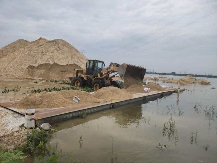 高新片區(qū)楊家灘砂場組織員工有序的轉移砂場固定資產,將重要物質存放在地勢較高處,人員撤離砂場,確保順利度過汛期。