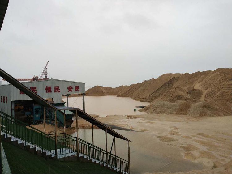 連日的暴雨,致使砂場場地大部分存在積水,公司經開國集砂場利用砂堆作為圍堰,有效的防止水灌入場地;對于場地內澇情況,待雨勢稍弱時,設置抽水機將場內積水及時排出。