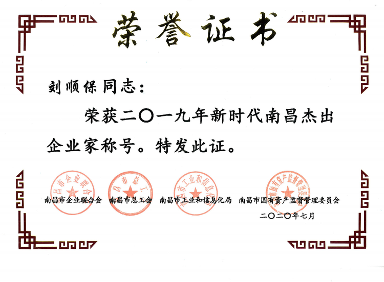近期,南昌市表彰了一批為我市經(jīng)濟社會發(fā)展作出突出貢獻的先進集體和先進個人。市政公用集團黨委委員,贛昌砂石公司黨總支部書記、董事長劉順保受到表彰,榮獲“2019年新時代南昌杰出企業(yè)家”榮譽稱號。本次共有20位優(yōu)秀企業(yè)家,獲得該榮譽稱號。