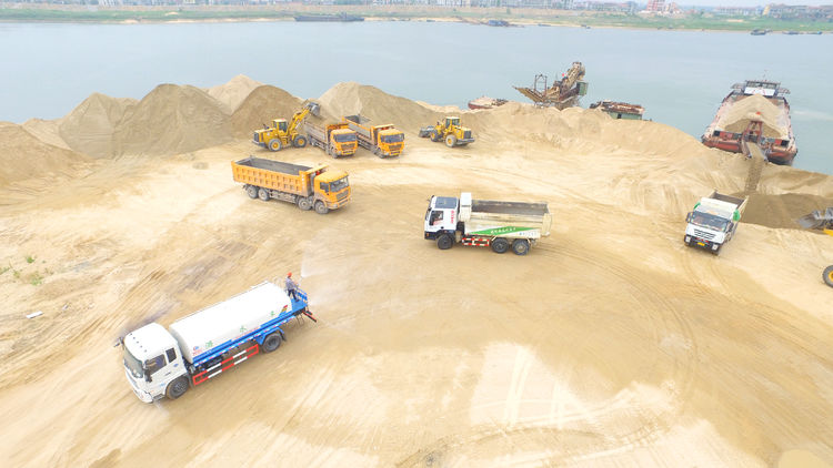 堤岸下,雜草茂盛地生長(zhǎng)著。雜草前方有幾處板房,這些板房由一個(gè)小池塘隔開(kāi),靠近堤岸的一側(cè)是倉(cāng)庫(kù)和停車(chē)棚,靠近贛江的一側(cè)是磅房和休息室,磅房再往前就是連綿的砂丘了。砂丘在陽(yáng)光的映照下閃閃發(fā)光,仿佛一座座金山。砂丘的西邊是一大片農(nóng)田,潮水尚未退去,田里還是一片汪洋。