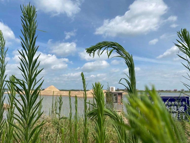 我初來(lái)砂場(chǎng)時(shí),正是盛夏時(shí)節(jié)。那一天天氣晴朗,萬(wàn)里無(wú)云。站在堤上放眼望去,砂場(chǎng)的風(fēng)景一覽無(wú)遺。