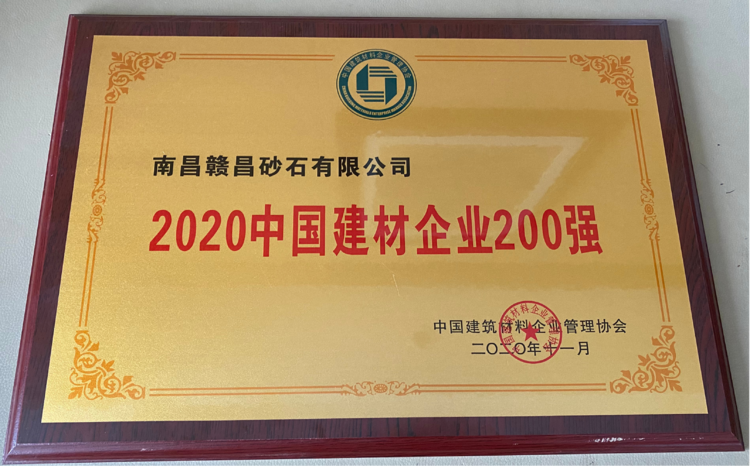 最后,中國(guó)建筑材料企業(yè)管理協(xié)會(huì)在大會(huì)上為2020年中國(guó)建材企業(yè)500強(qiáng)頒發(fā)獎(jiǎng)牌,南昌贛昌砂石有限公司作為500強(qiáng)企業(yè)前200名,特榮獲“2020中國(guó)建材企業(yè)200強(qiáng)”榮譽(yù)稱號(hào)。