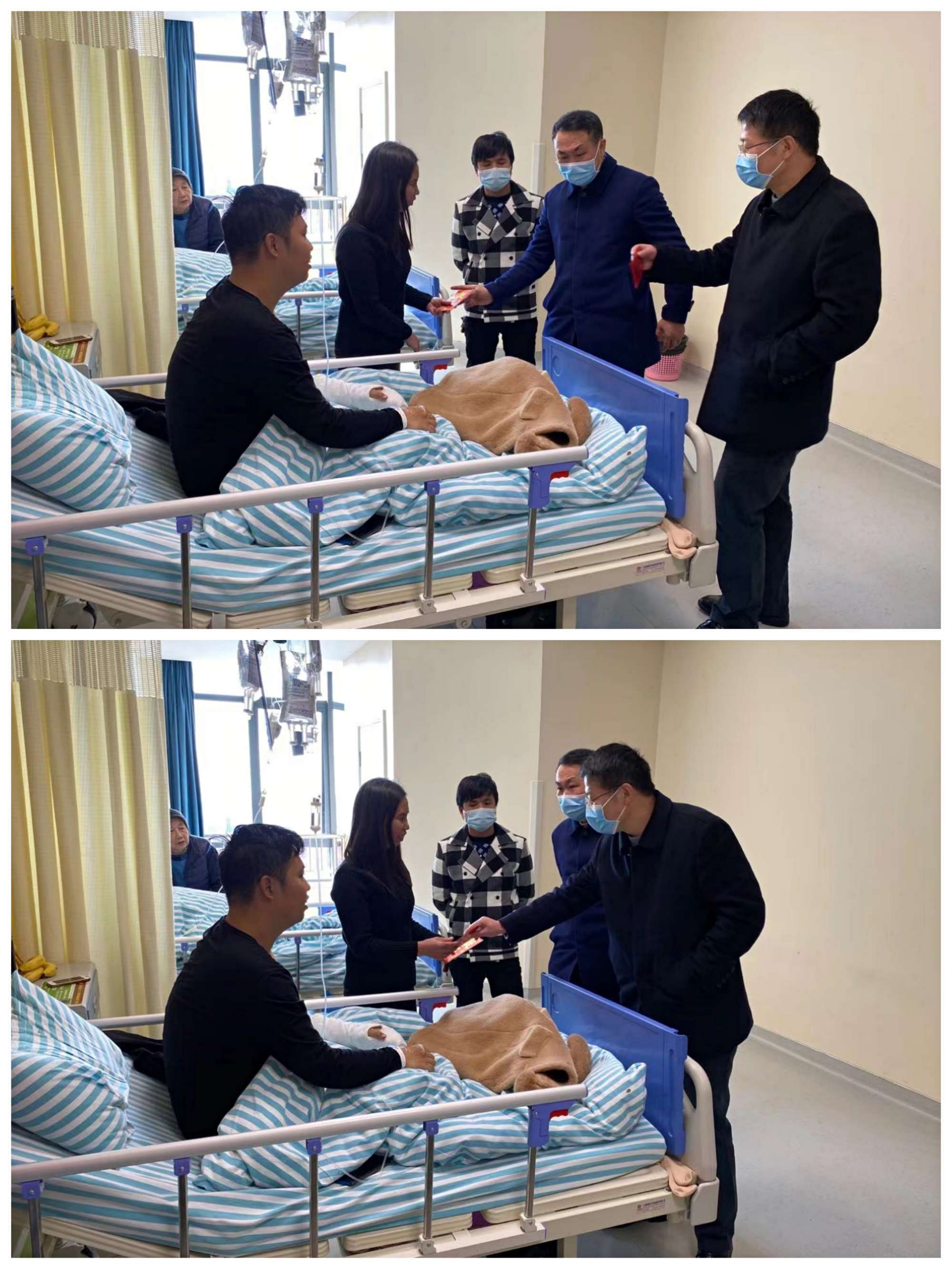 看望慰問(wèn)期間,吳海勤、劉順保送上了慰問(wèn)金并親切地與楊正友交談,詳細(xì)地詢問(wèn)了他的傷勢(shì)和治療情況,囑咐他要安心養(yǎng)傷,爭(zhēng)取早日康復(fù),以更好的狀態(tài)投入到今后的工作之中。