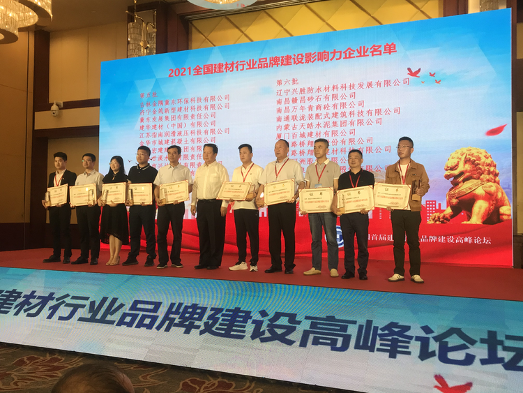 隨后,中國建筑材料企業(yè)管理協(xié)會、中國建筑材料企業(yè)管理協(xié)會品牌建設(shè)分會共同在大會上為“2021全國建材行業(yè)品牌建設(shè)影響力企業(yè)”頒發(fā)證書。南昌贛昌砂石有限公司有幸提名并成功獲得“2021全國建材行業(yè)品牌建設(shè)影響力企業(yè)”榮譽稱號。