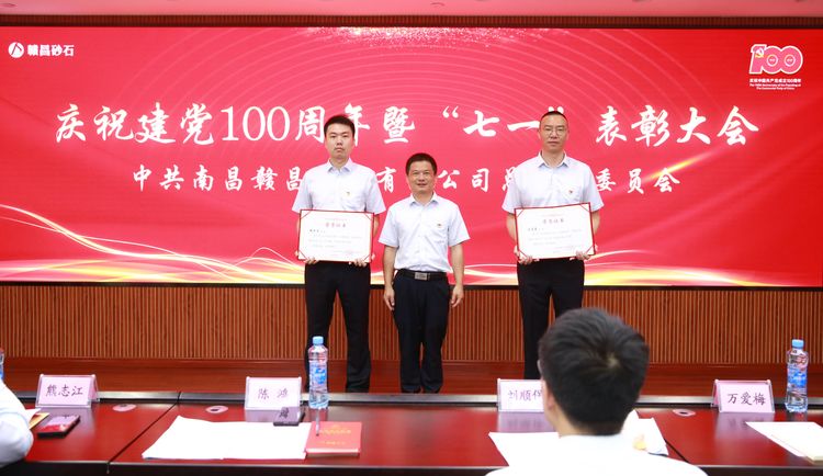南昌贛昌砂石有限公司黨總支部召開慶祝建黨100周年暨“七一”表彰大會(huì),市政公用集團(tuán)黨委委員,贛昌砂石公司黨總支部書記、董事長(zhǎng)劉順保,公司黨總支部委員、總經(jīng)理陳鴻攜全體領(lǐng)導(dǎo)班子成員參會(huì),市政公用集團(tuán)紀(jì)檢三組領(lǐng)導(dǎo)出席會(huì)議。