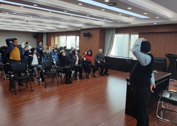 隨后,胡主任演示了6種動作,用于日常預(yù)防頸椎病,將理論與實(shí)例相結(jié)合,使課堂氣氛輕松又活躍。