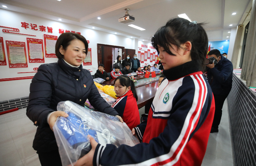 四年級(jí)的小鳳(化名)新年心愿是想要一套文具,拿到禮物后,她驚喜地發(fā)現(xiàn),除了文具外,還有一個(gè)粉色的書包和一個(gè)保溫杯,“這個(gè)書包很大,可以裝很多東西,我想把這個(gè)書包留著等我上六年級(jí)的時(shí)候用,這樣家里就可以省下買書包的錢了?!毙▲P懂事地說。