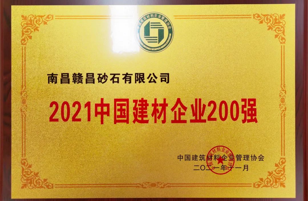 同年12月,榮獲中國建筑材料企業(yè)管理協(xié)會(huì)、中國建筑材料企業(yè)管理協(xié)會(huì)品牌建設(shè)分會(huì)頒發(fā)的“2021中國建材企業(yè)200強(qiáng)”榮譽(yù)稱號(hào)。