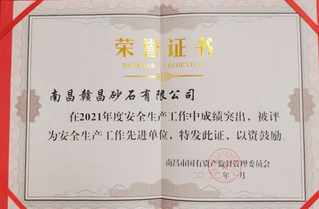 2021年贛昌砂石公司榮獲江西省企業(yè)聯(lián)合會(huì)、江西省企業(yè)家協(xié)會(huì)頒發(fā)的“2020年度江西省優(yōu)秀企業(yè)”榮譽(yù)稱號(hào)。