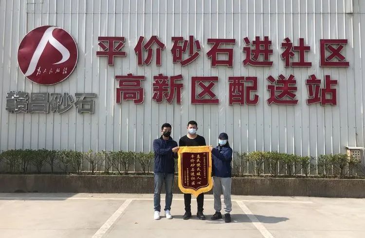 2022年3月2日上午,南昌市青山湖區(qū)洪愉名都業(yè)主李先生驅(qū)車來到贛昌砂石公司高新區(qū)配送站,送來一面印有“平價砂石進社區(qū)、惠民便民暖人心”金色大字的錦旗,由衷感謝贛昌砂石公司在春節(jié)期間,堅持為市民提供惠民便捷的砂石配送服務,解決了春節(jié)期間居民裝修“買砂難、購砂貴”的大問題。