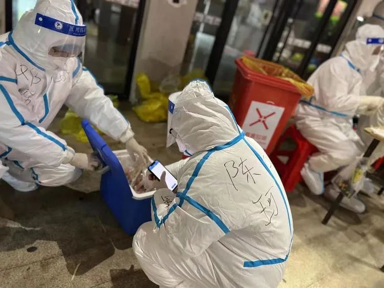 由于需要反復全員核酸檢測就意味著需要登記記錄每一戶每一個人的個人信息,并將試管掃碼打包,那么志愿者的工作除了考驗志愿者的耐心,也考驗自己的體力以及安排能力。在進行這些工作時,我們不能身著自己輕便的衣服,而是要換上厚重的防護服,一站就是一天,或幫忙維護一下秩序,或調(diào)控一下排隊的間隔,或補充咽拭子檢測試劑和手部消毒液,或做個人員引導員,或采集人員信息,或貼下樣品標簽等。我們都在為這個城市的平安喜樂付出這樣或那樣的努力,希望能以自己的實際行動來守護我們的家鄉(xiāng)。