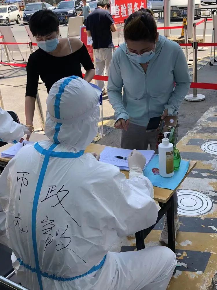 吳啟凡和羅超一組,負責人員信息登記,許多外省份司機帶著濃厚的鄉(xiāng)音,登記起來難度比較大,他們擔心長途駕駛的司機們由于疲憊會稍顯不耐煩,在詢問記錄,提醒著他們排好隊,保持2米距離的同時,他們還會時不時的寬慰著司機焦急的情緒。