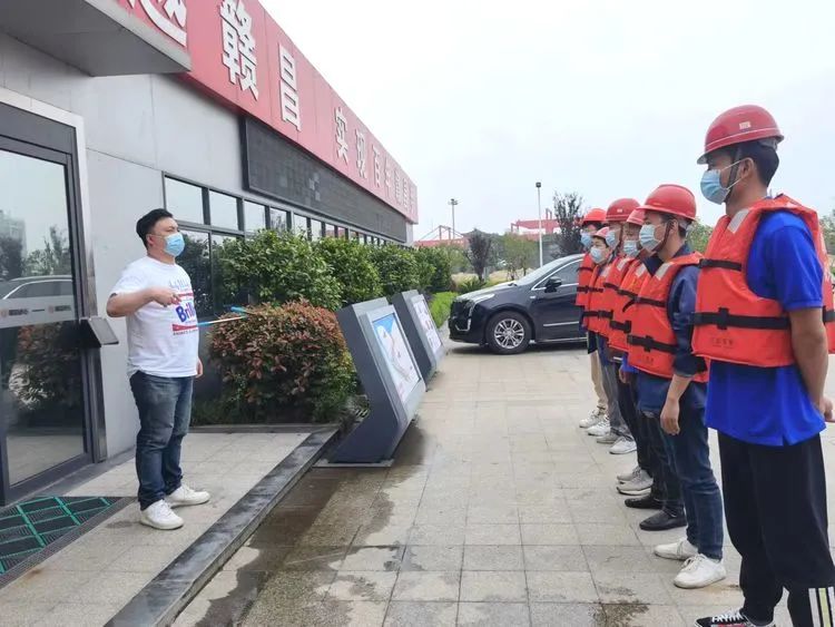 演練開始前,經(jīng)開片區(qū)副經(jīng)理付軍向參與演練人員及全體員工傳達《經(jīng)開片區(qū)砂場防汛應(yīng)急預(yù)案》并講解防汛安全知識及演練過程中的注意事項,并部署了演練過程中的班組人員的分工。