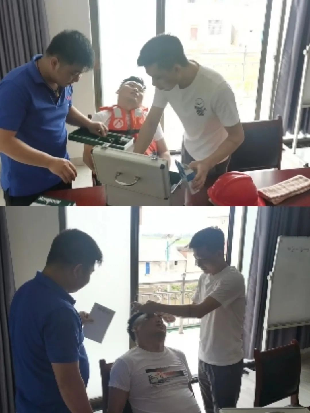 接著現(xiàn)場情景模擬出工作中如遇人員昏厥中暑應(yīng)該如何進行搶救人員。