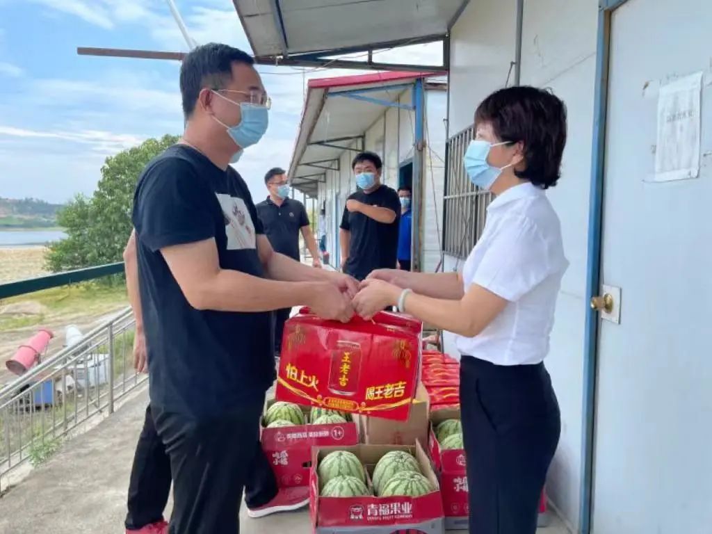 7月29日下午,贛昌砂石公司紀委書記萬愛梅前往南昌縣分公司劍霞砂場,為堅守在崗位的砂場員工送去綠豆、西瓜、涼茶等防暑降溫慰問物資。監(jiān)審部部長孫嘉冠,南昌縣分公司總經(jīng)理王勝、總經(jīng)理助理成俊及相關(guān)人員陪同。