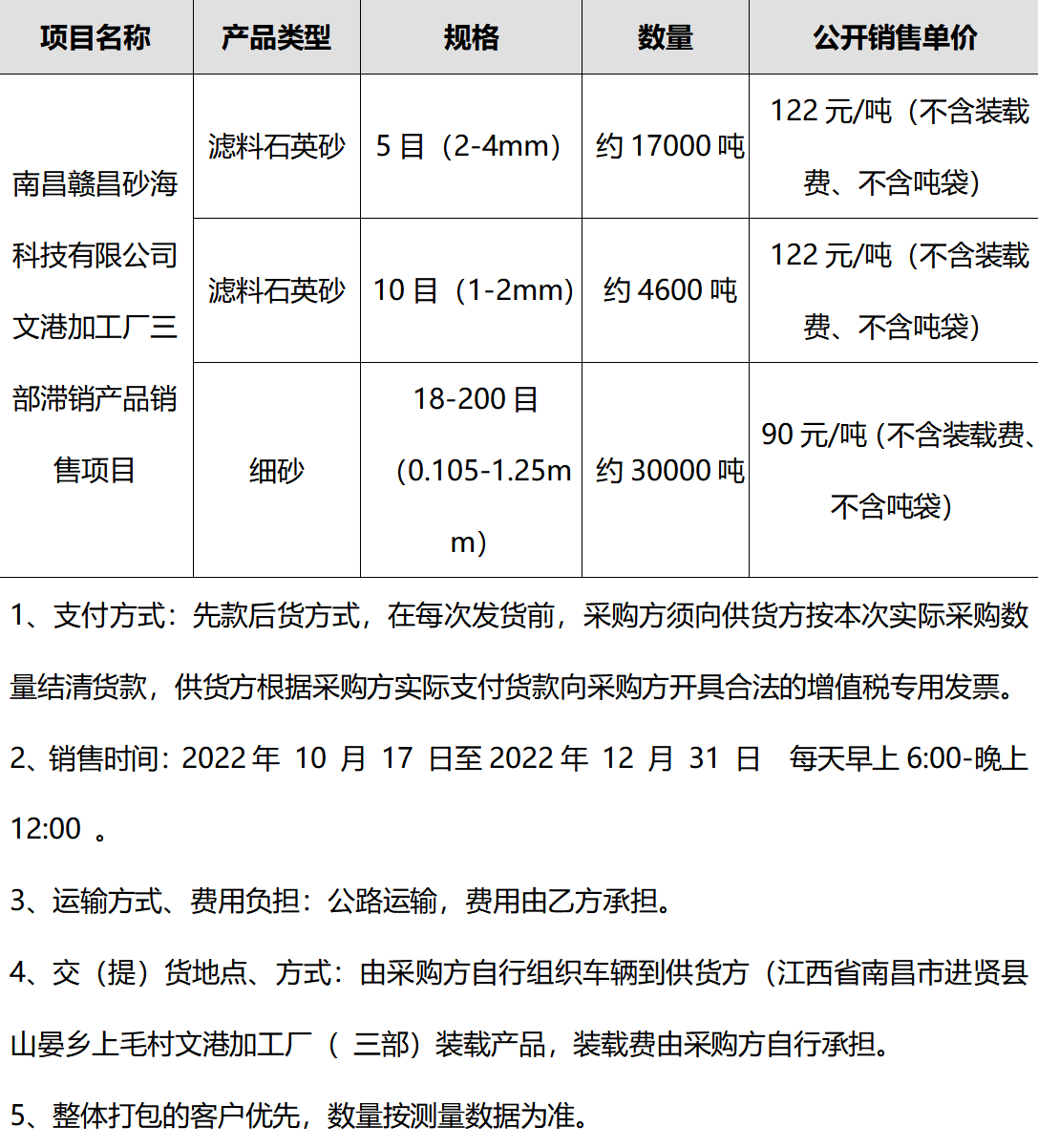 南昌贛昌砂??萍加邢薰緮M對(duì)文港加工廠三部滯銷產(chǎn)品采用公開銷售的的方式,現(xiàn)將公開銷售的有關(guān)情況公告如下:
