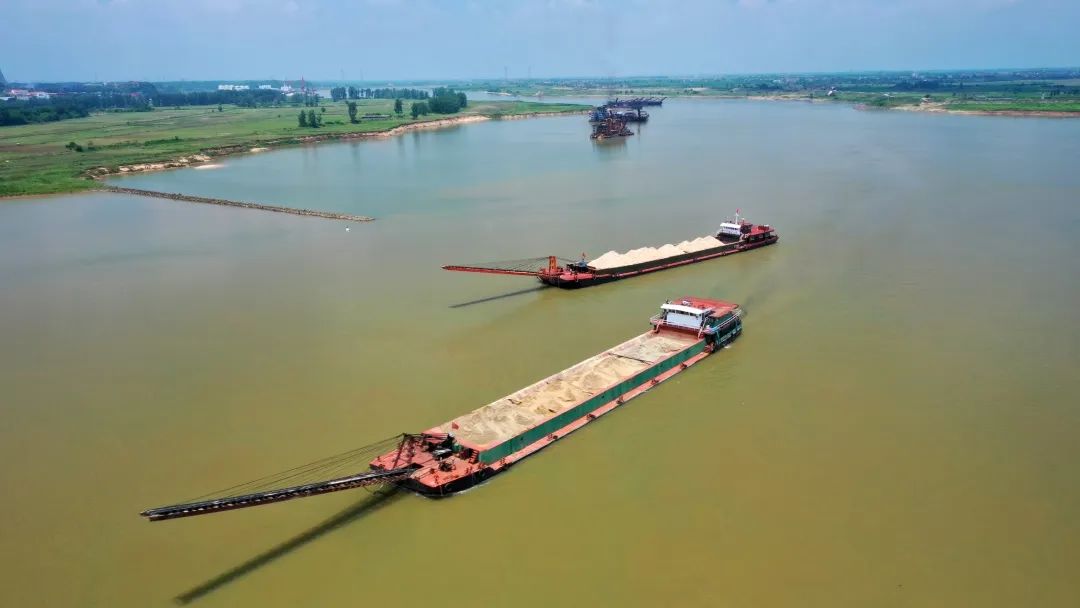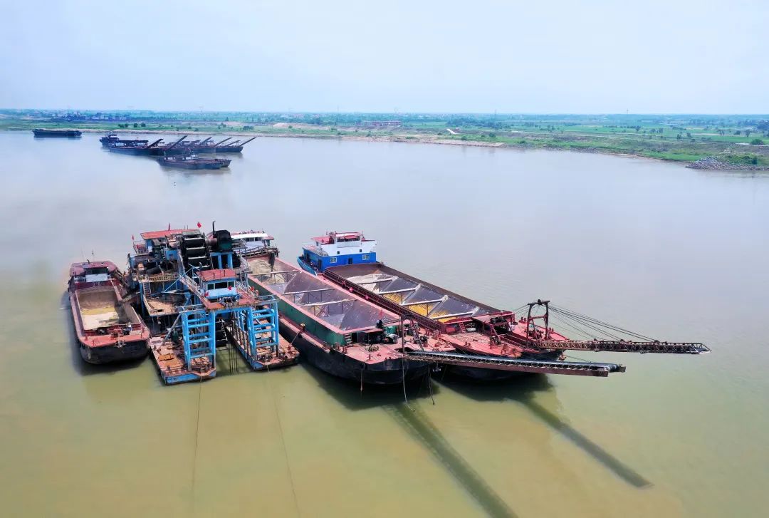 近期,贛撫尾閭綜合整治工程主支樞紐畫眉咀料場內(nèi),贛昌砂石公司采砂施工作業(yè)船只正在加緊生產(chǎn)中。