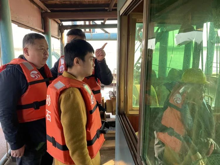 為加強(qiáng)采砂船舶管理工作,1月9日下午,贛昌砂石公司副總經(jīng)理蔡安煜一行深入一線實(shí)地調(diào)研采砂船舶管理工作,公司前期部負(fù)責(zé)人熊志及相關(guān)人員陪同。