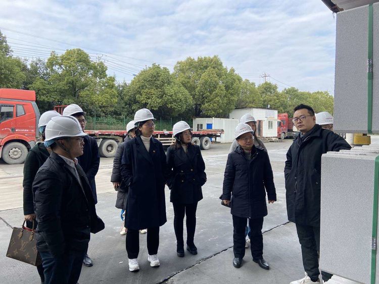 在杭加新材公司,陳鴻一行前往廠區(qū)實(shí)地察看了其主營(yíng)產(chǎn)品AAC板和具體生產(chǎn)流程工藝等,并與對(duì)方負(fù)責(zé)人就AAC板材中砂石使用情況,以及建材上下游產(chǎn)業(yè)鏈未來發(fā)展趨勢(shì)進(jìn)行了充分的探討交流。