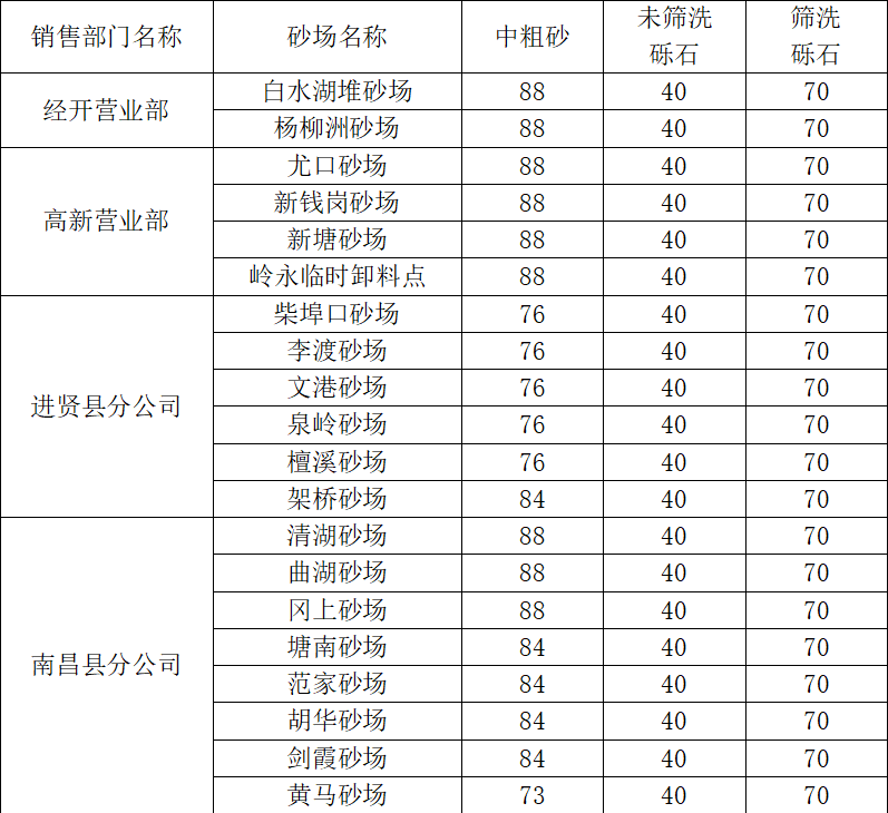 感謝您長期以來對南昌贛昌砂石有限公司的認可與支持。結(jié)合市場行情變化,經(jīng)公司研究決定,對贛昌砂石公司砂石銷售價格調(diào)整如下: