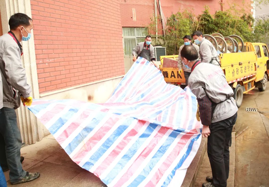 用篷布鋪設(shè)在地面上,防止砂石污染地面