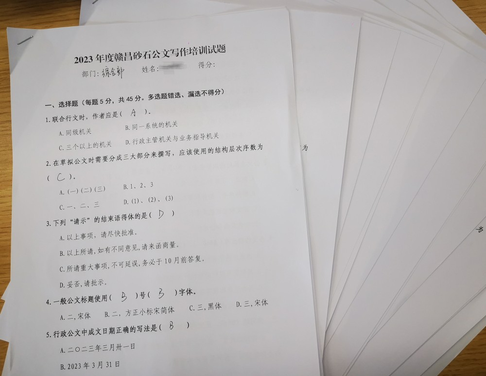 會后,參訓(xùn)人員進(jìn)行了試卷答題,以檢驗(yàn)大家的培訓(xùn)效果。