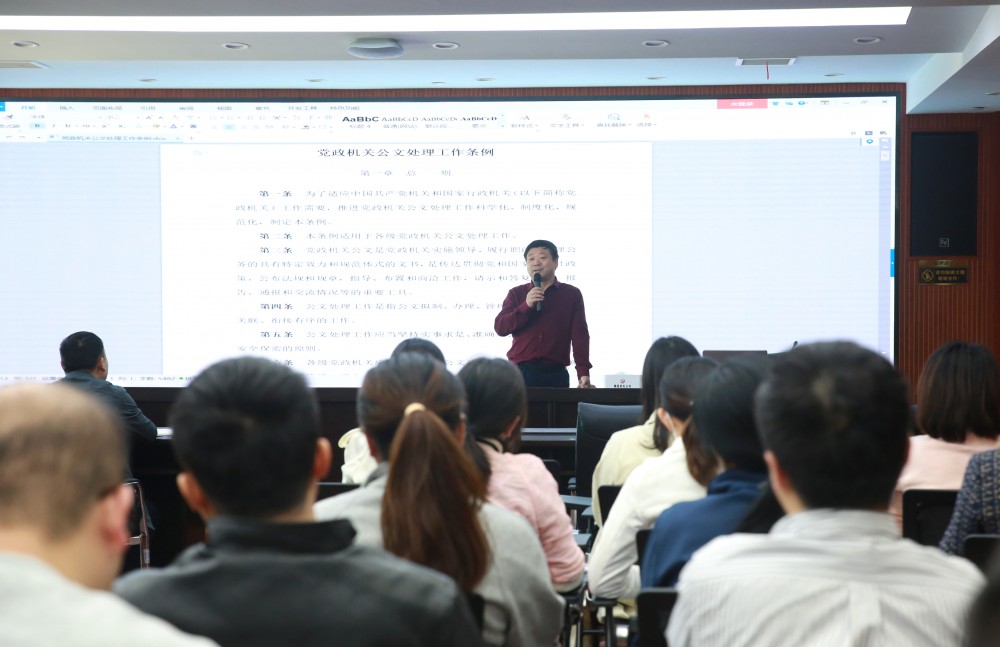 培訓(xùn)會上,李德平結(jié)合工作經(jīng)驗(yàn)和實(shí)際案例,從公文概述(定義、特點(diǎn)、作用、類別)、公文寫作程序、公文格式及行文規(guī)則、常用公文寫作格式及方法、公文寫作常見問題五個方面進(jìn)行了全方位、系統(tǒng)性的交流闡述。講解方式深入淺出、生動有趣,講解內(nèi)容全面客觀、實(shí)用性強(qiáng)。