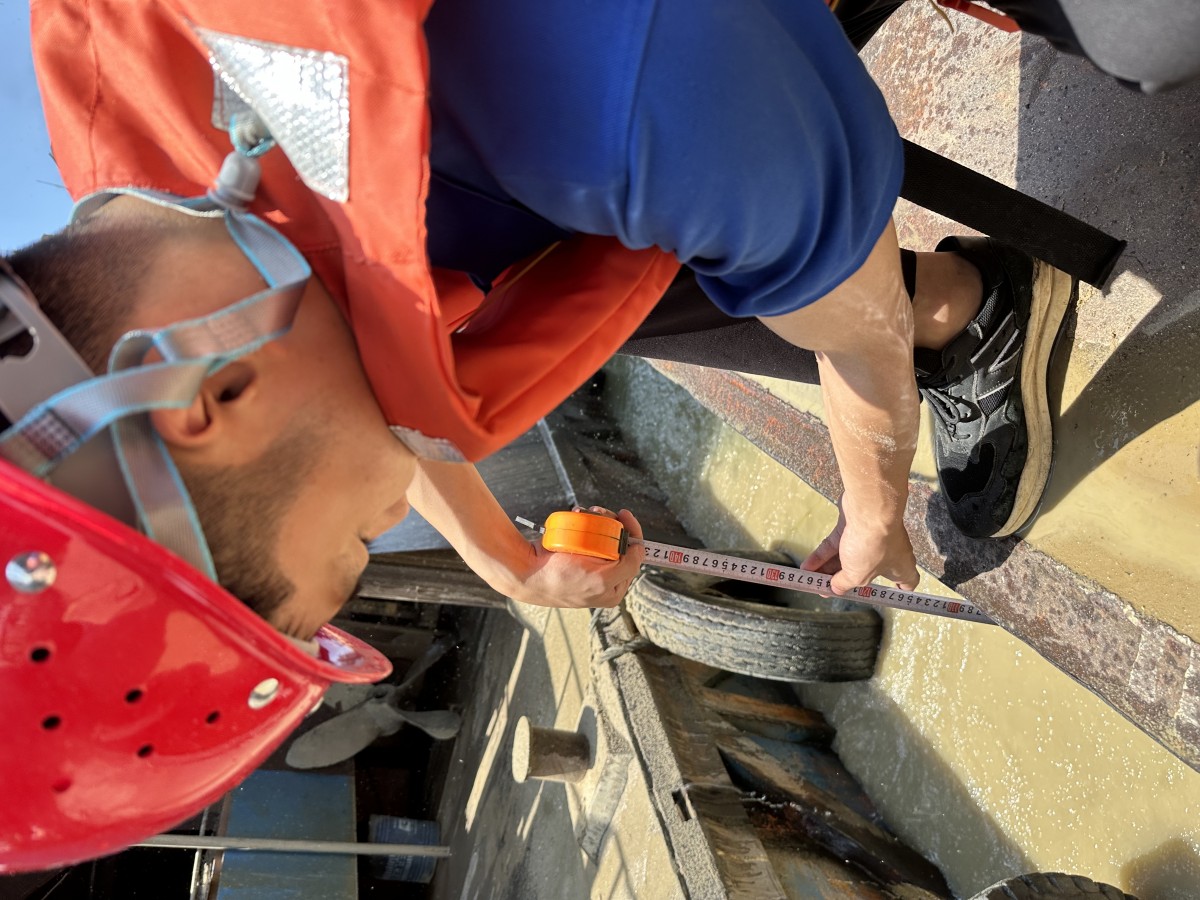 此時(shí)戶外溫度突破40攝氏度,在船只發(fā)動(dòng)機(jī)持續(xù)作業(yè)運(yùn)轉(zhuǎn)下,船艙溫度實(shí)測(cè)很快接近50攝氏度,伴隨著機(jī)器的轟鳴,開票量方員張宏濤正在揮汗如雨檢查砂石質(zhì)量,安全帽下,張宏濤臉上滿是豆大的汗珠。“辛苦歸辛苦,但是想著贛撫尾閭工程項(xiàng)目建設(shè)有自己的一點(diǎn)貢獻(xiàn),就覺得很有成就感,而且大家都很默契,肯定更要把活干好。”張宏濤說(shuō)。