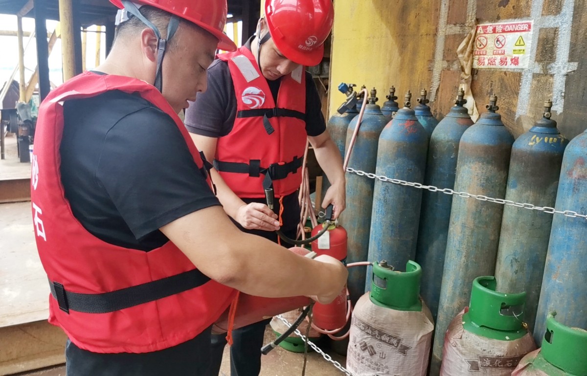 公司開采管理中心嚴(yán)格落實(shí)公司制定的“三個(gè)一”檢查機(jī)制,分管中層每周對開采作業(yè)的采區(qū)進(jìn)行安全隱患檢查,其中包括采砂船機(jī)械設(shè)備、運(yùn)力船機(jī)械設(shè)備、消防安全設(shè)備、人員安全的檢查,為保障采砂船人身安全特別要求采區(qū)生活區(qū)、作業(yè)區(qū)分開,并反復(fù)強(qiáng)調(diào)船員穿戴救生設(shè)備重要性。同時(shí),公司還加強(qiáng)了開采前對采挖船舶的安全檢查工作,如發(fā)現(xiàn)采砂設(shè)備潛在隱患,立即下達(dá)整改通知單,督促船舶在規(guī)定期限內(nèi)整改維修到位,保障開采期間設(shè)備安全。