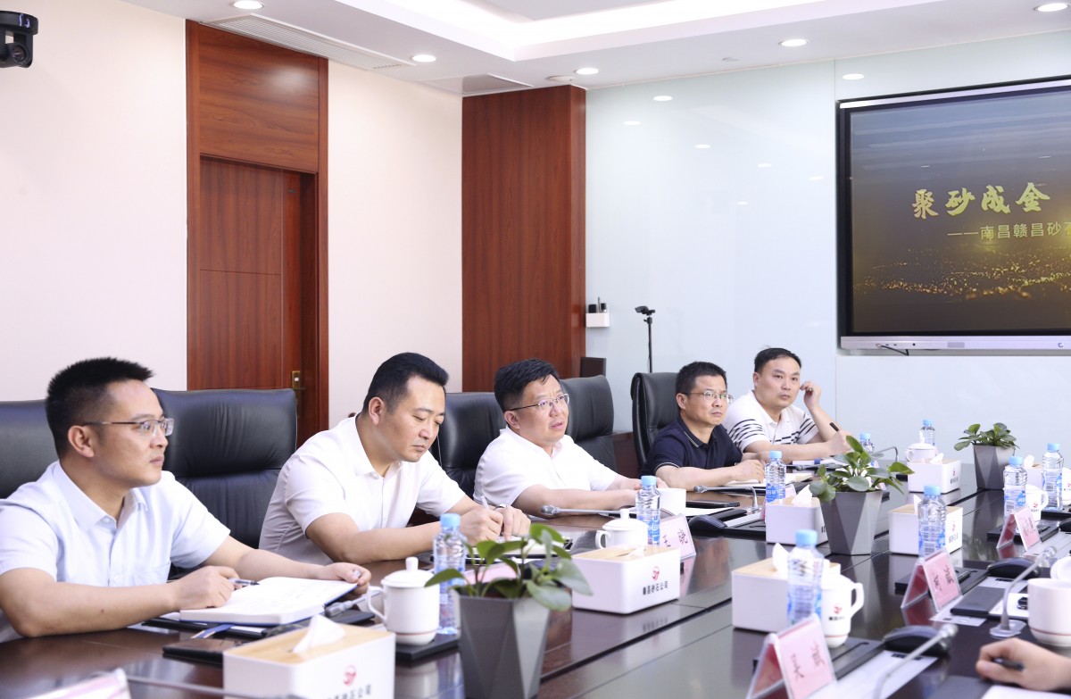 4月28日下午,南昌市人民政府副秘書長楊雨晨一行赴贛昌砂石公司調研砂石供應。集團黨委書記、董事長章勇,市政公用集團副總經理柯斌,集團黨委委員、江西長運黨委書記、董事長王曉,集團高管陳鴻,贛昌砂石公司及市排水公司相關負責人參加會議。